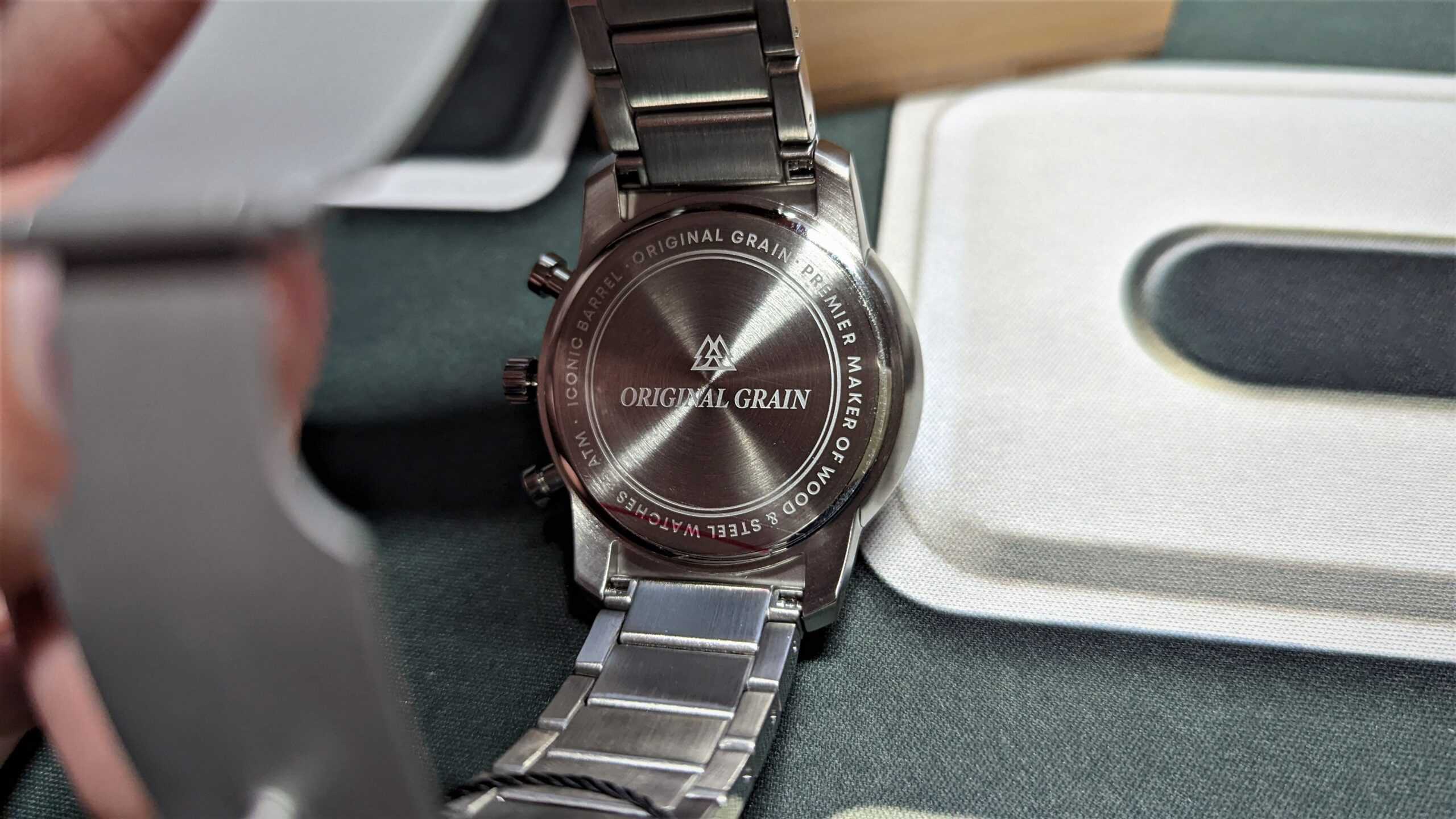 Water resistance is a crucial factor to consider when choosing an outdoor or adventure watch like the Original Grain Brewmaster Silver Barrel Chrono 42mm watch. Water-resistant timepieces are designed to resist water infiltration, keeping your watch safe from damage when exposed to rain, splashes, and even shallow-water activities like swimming. The watch is water resistant to 5 ATM (50 meters); however, due to its wood construction, it’s recommended not to be submerged in water. A splash of water on the watch here and there should be fine.