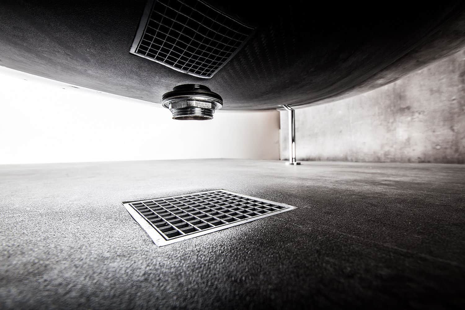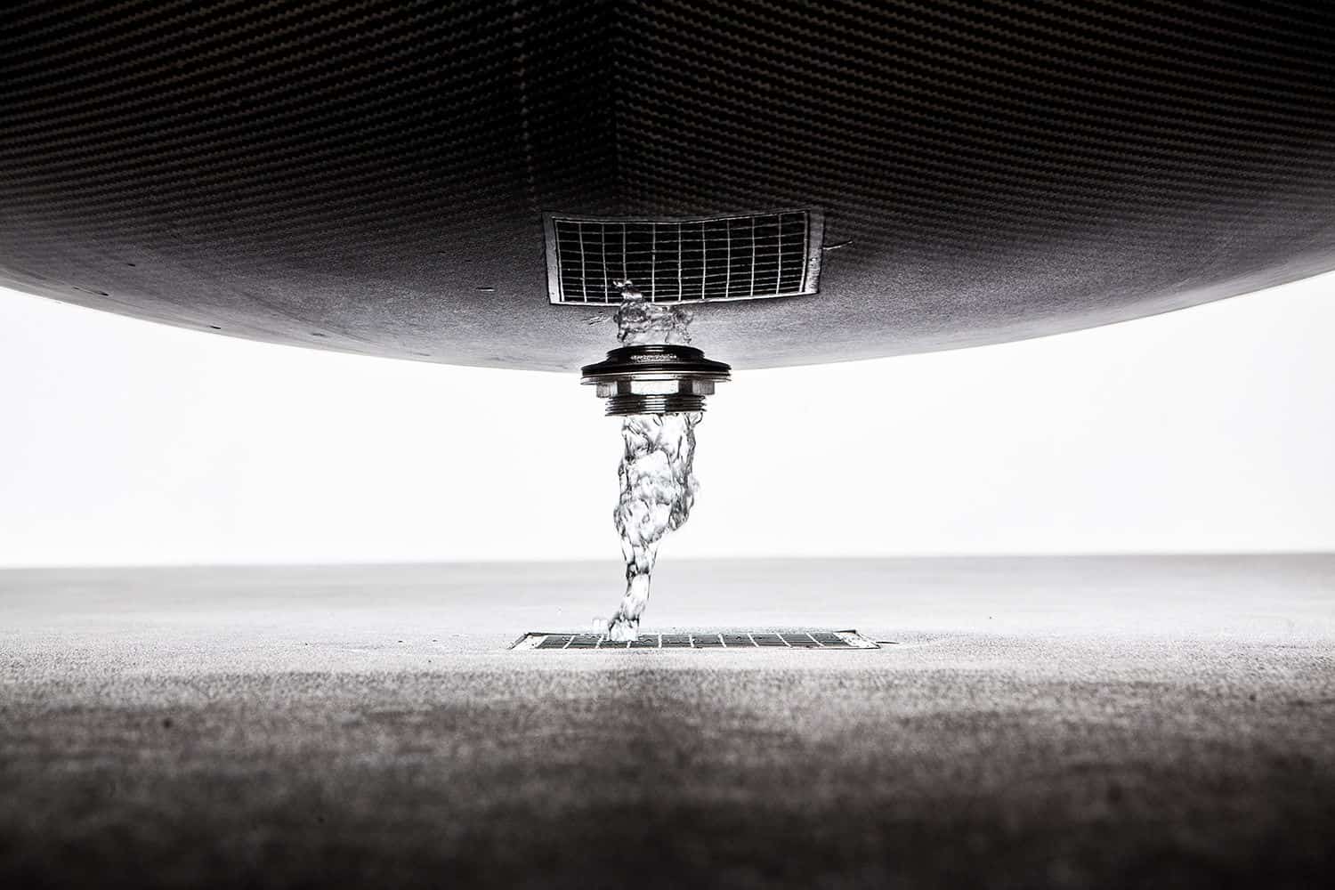 The carbon fiber isn’t just for looks (but it helps): sandwiched in between is a layer of foam core. The result is a light, strong structure that is smooth on skin and insulates the Vessel hammock bathtub so that hot water actually stays hot, instead of becoming tepid before you can even get in. It’s also ridiculously easy to wipe down, which is probably good considering how most men treat their bathrooms. The water is let out through the bottom and escapes through a floor drain, so you can be extra lazy and just hose down the entire room if necessary.