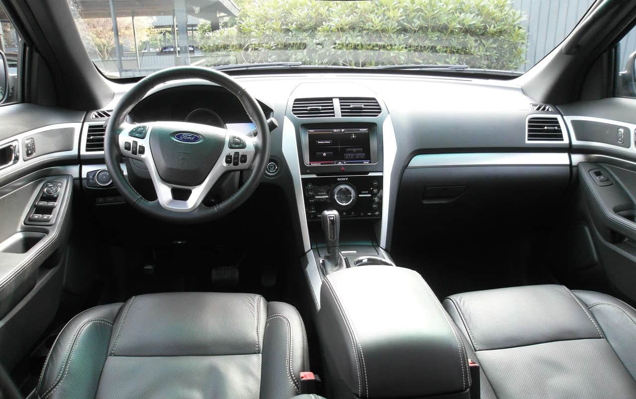 The 2013 Ford Explorer Sport is a pretty good looking vehicle; it has a muscular stance and has pretty good road presence. With the “Sport” package there are a few differences between the regular models and this one. At the front, the three horizontal bars have a black high gloss finish (instead of chrome) on low gloss mesh behind them. The chrome bar on the tailgate also gets the black high gloss treatment. The headlights and taillights also get black tint, and finishing off the sporty look are 20” machined aluminum black wheels with polished edges and the word “Sport” engraved.