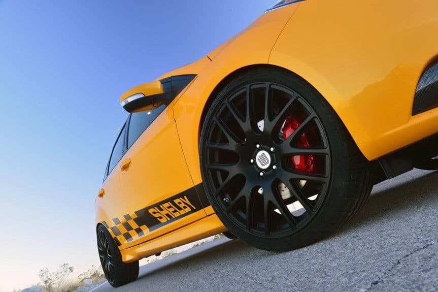 What the Shelby Focus ST does get is a new suspension setup which lowers the ride height, larger brakes, new alloy wheels wrapped in performance tires, and a Borla exhaust system. At least the Borla system will make it sound faster than it actually is.