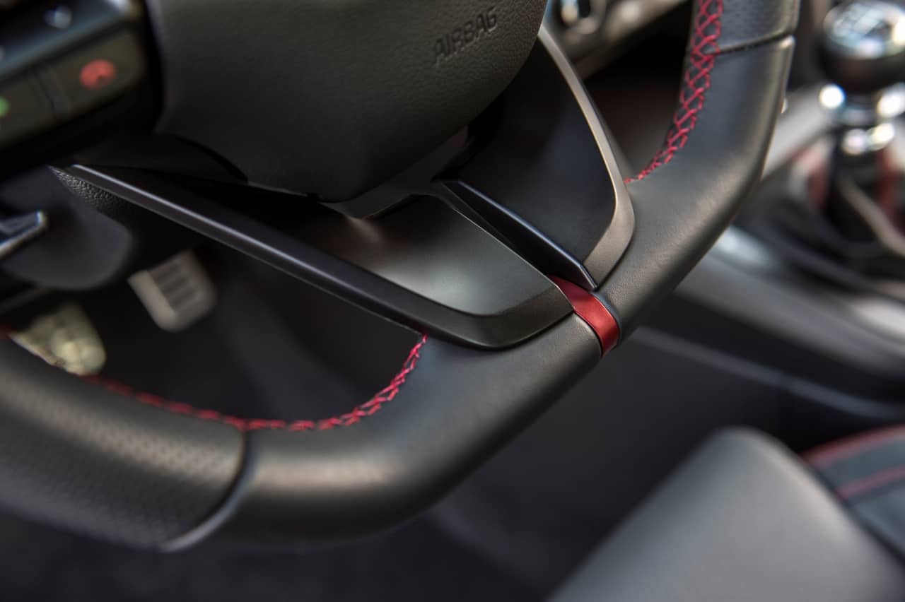 The Sport also benefits from small but significant interior improvements, the first of which I noticed was the heavily bolstered black leather seats with contrasting red stitching, the red stitching is another one of my favorite design elements of this car, giving the car an upscale and sporty look. The Sport also benefits from a thick heated flat-bottom steering wheel with red stitching and red needles on the speedometer and tachometer.
