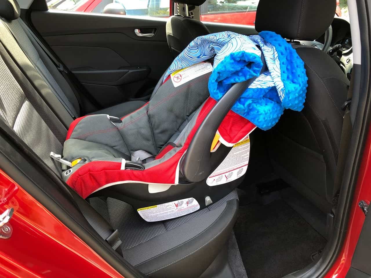 The interior on the new Accent is also redesigned, and it has a nice simple layout. The interior design is very clean looking and I personally like it a lot. I’m 5’8” and found the driver’s seat to have adequate space and the seats are comfortable enough for driving around in the city, I didn’t take it on a long drive, so I don’t know how comfortable the seats would be on a longer stint. The rear seat had enough room for me, sitting behind my driving position. I had a couple of inches of room between my knees and the back of the front seat and had an inch or two to spare above my head. I think the rear seat might be tight for anyone above 5’10”. I did put in a car seat in the rear seat, there was enough room to put the car seat but it made the front passenger seat useless. The entry to the rear seat is also a little tight, my wife bumped my baby’s head against the top when she was putting him in.