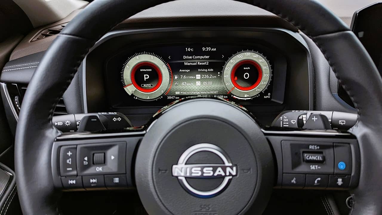The interior technology in the Rogue is top-notch, with features such as a standard 12.3″ digital instrument cluster and a 9″ infotainment touchscreen. Lower trims come with smaller screens for the gauge cluster and infotainment screen.