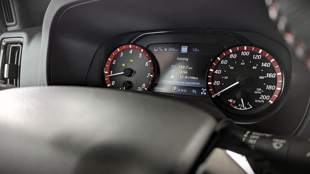 According to Natural Resources Canada (NRCan), the 2025 Nissan Frontier PRO-4X should consume 14.0/11.1/12.7 liters/100 kilometers in city/highway/combined driving. Over the week-long review, the onboard computer showed 11.4 L/100 km in about 40/60 city/highway driving. I didn’t haul or tow anything with the truck, so these numbers will increase with an increased load.