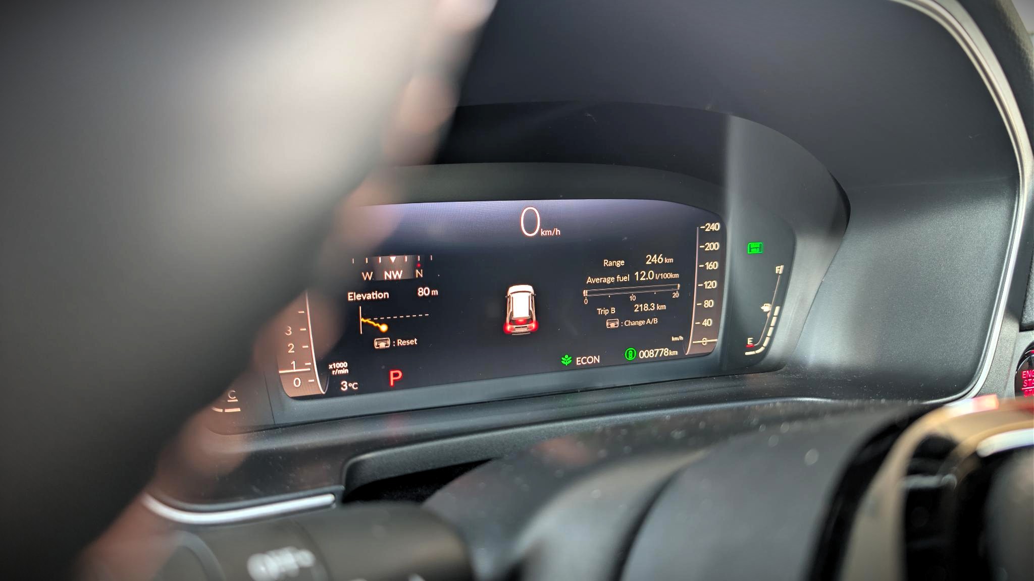 The 2026 Honda Passport TrailSport Touring doesn’t sip fuel like a Honda Civic, but it hangs tough for an off-road SUV. My real-world mixed driving saw the numbers hit 12.0 liters/100 km combined, with about 50/50 city/highway driving. I do drive with a light foot and don’t usually have much cargo.