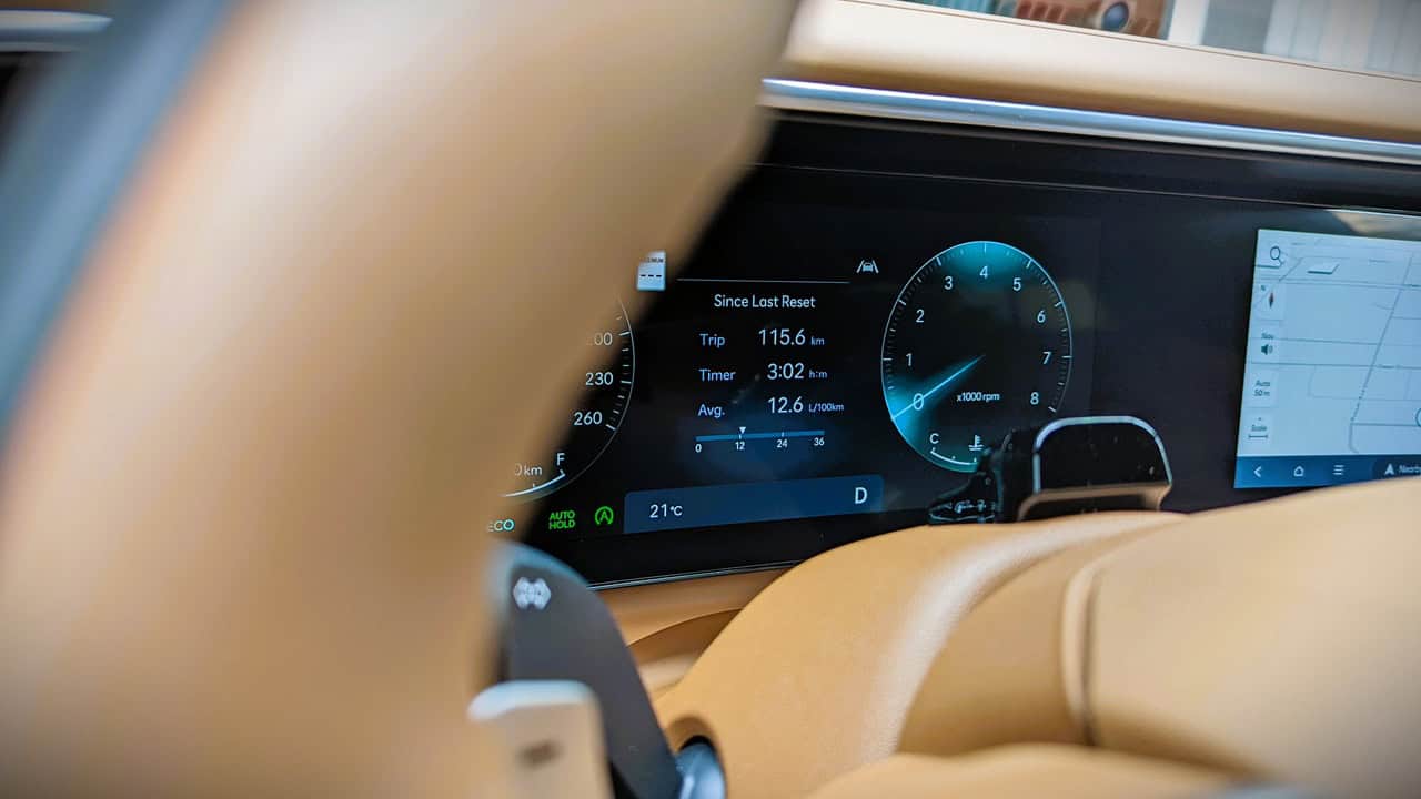 According to Natural Resources Canada (NRCan), the V6 powered Palisade should consume 13.4/10.0/11.9 liters/100 kilometers in city/highway/combined driving. For our real-world test, with about 50/50 city/highway driving, the onboard computer showed an average fuel consumption of 12.6 L/100 km, a bit higher than the advertised 11.9 L/100 km combined.
