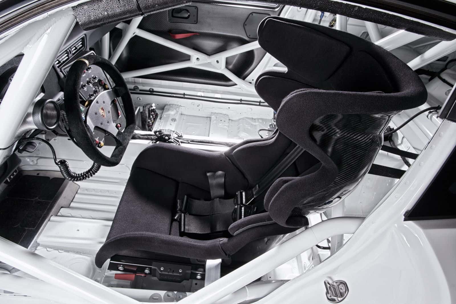 The new 911 GT3 Cup race car is based on the 7th generation 911 and like previous Porsche cup cars, the new one looks very similar to the road going version with a few changes, of course. The interior, on the other hand, is barebones (as one would expect in a race car) with none of the luxuries found on the road going car. The interior features a carbon fiber bucket seat, a full roll cage, a bunch of switches and buttons, and a digital gauge.