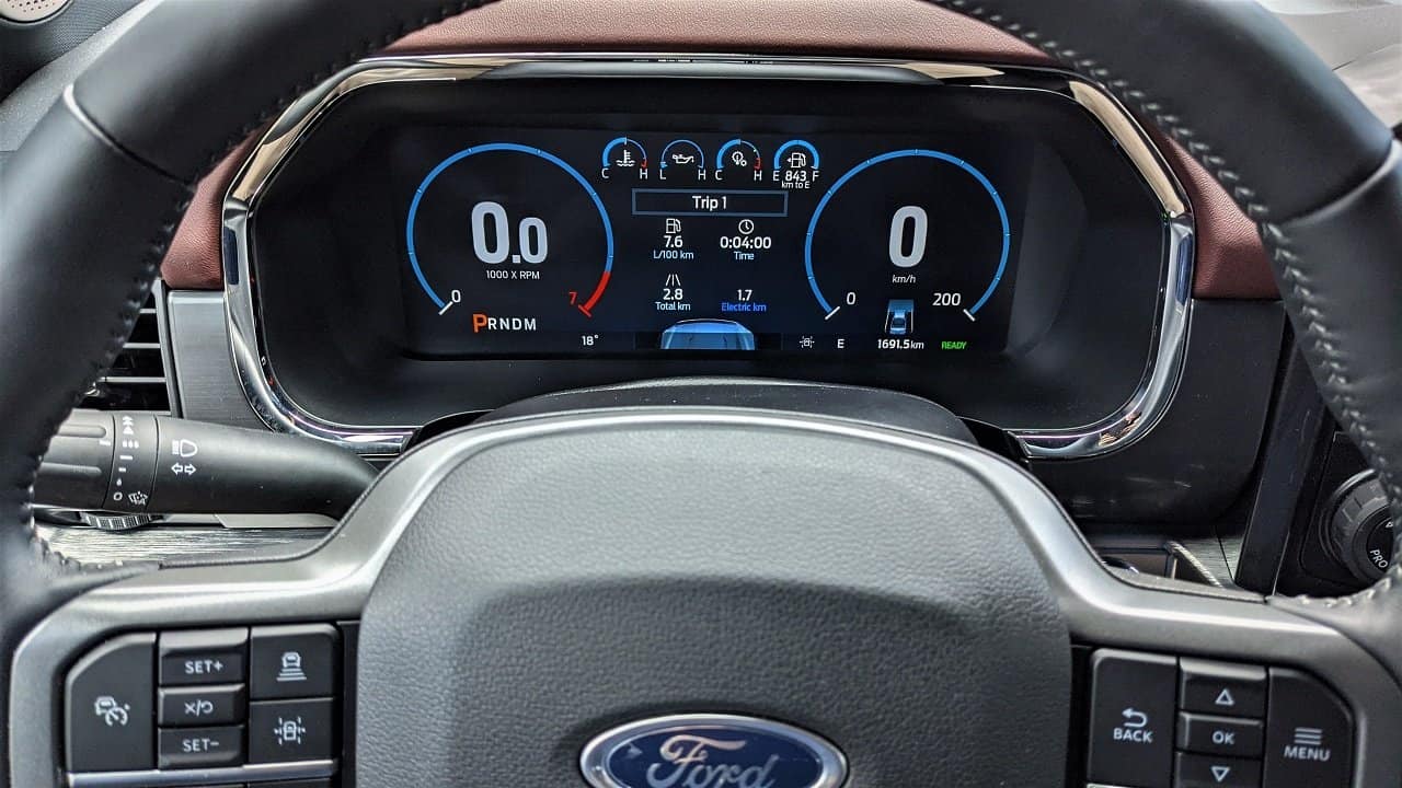 Another big screen featured on our review F150 is the 12” Digital Productivity Screen, which replaces the analogue gauges. This screen features large digital speedometer and tachometer, along with other information like fuel level, oil pressure, transmission temperature and engine coolant temperature. The area between the digital gauges can me be changed to pre-set information outputs. The whole display also changes colors and display based on which driving mode you’re in and every time you go between modes, there’s a cool graphic of the F150 doing a short animation.