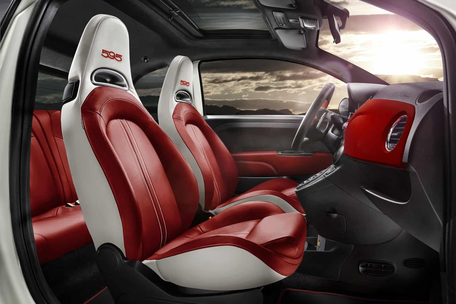Aesthetically, the upgrades include lots of stickers and logos on the outside. The car rides on 695 Magnesio Grey wheels with a red stripe on the outer rim. The interior is upgraded with two-tone treatment on the dashboard and the red and white leather bucket seats with “595” stitched on the headrests.