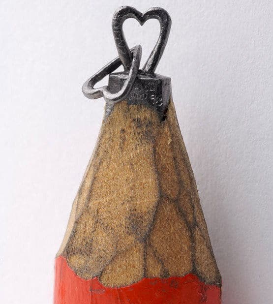 <3 the heart. I wonder how he cuts into the pencil without cracking the lead inside. would love to see them in person.