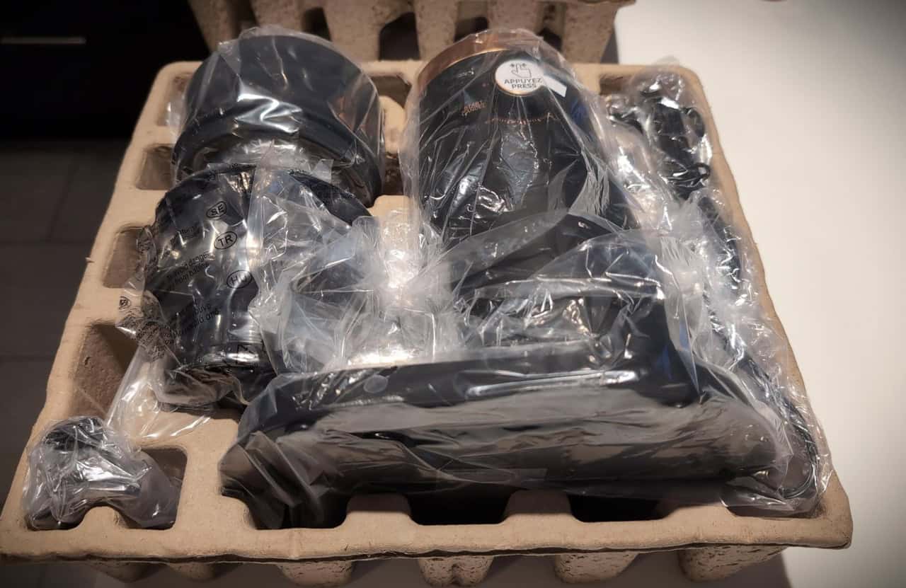 The AMZCHEF Ultra Fine Coffee Grinder‘s design and build is of top quality. The unit measures 12″L x 8″W x 14″H, about 36 cm tall, and weighs 6.45 pounds.