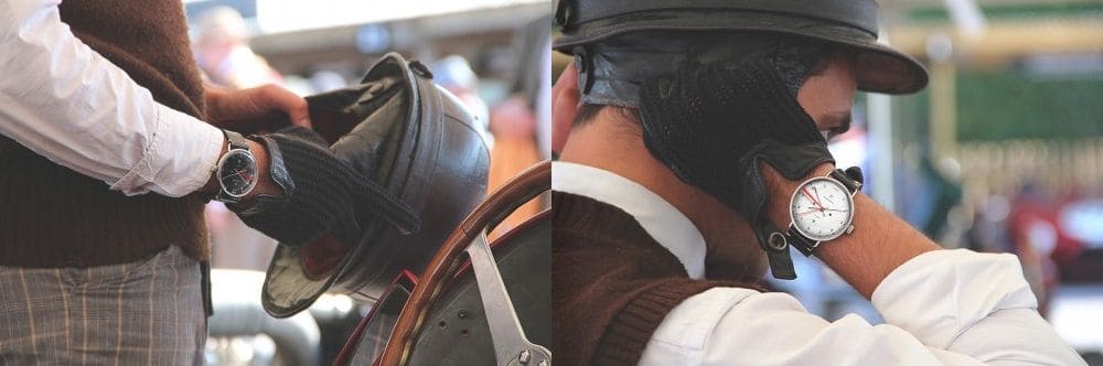 Like all other Autodromo watches, the Monoposto is inspired by an automotive gauge; Monoposto means “single seat”. The watch pays homage to the single seat racers of yesteryear. The red line on the dial represents the modern-day equivalent of the rpm red line, which mechanics would paint on the tachometer so the racers wouldn’t over-rev the engines. I don’t think we’ll have to worry about over-revving our watches, but the splash of color is a welcome one in any case, and would look excellent paired with one of the racing jackets from the Gulf Clothing line. After all, there’s nothing quite like a sleek Cafe Racer jacket.