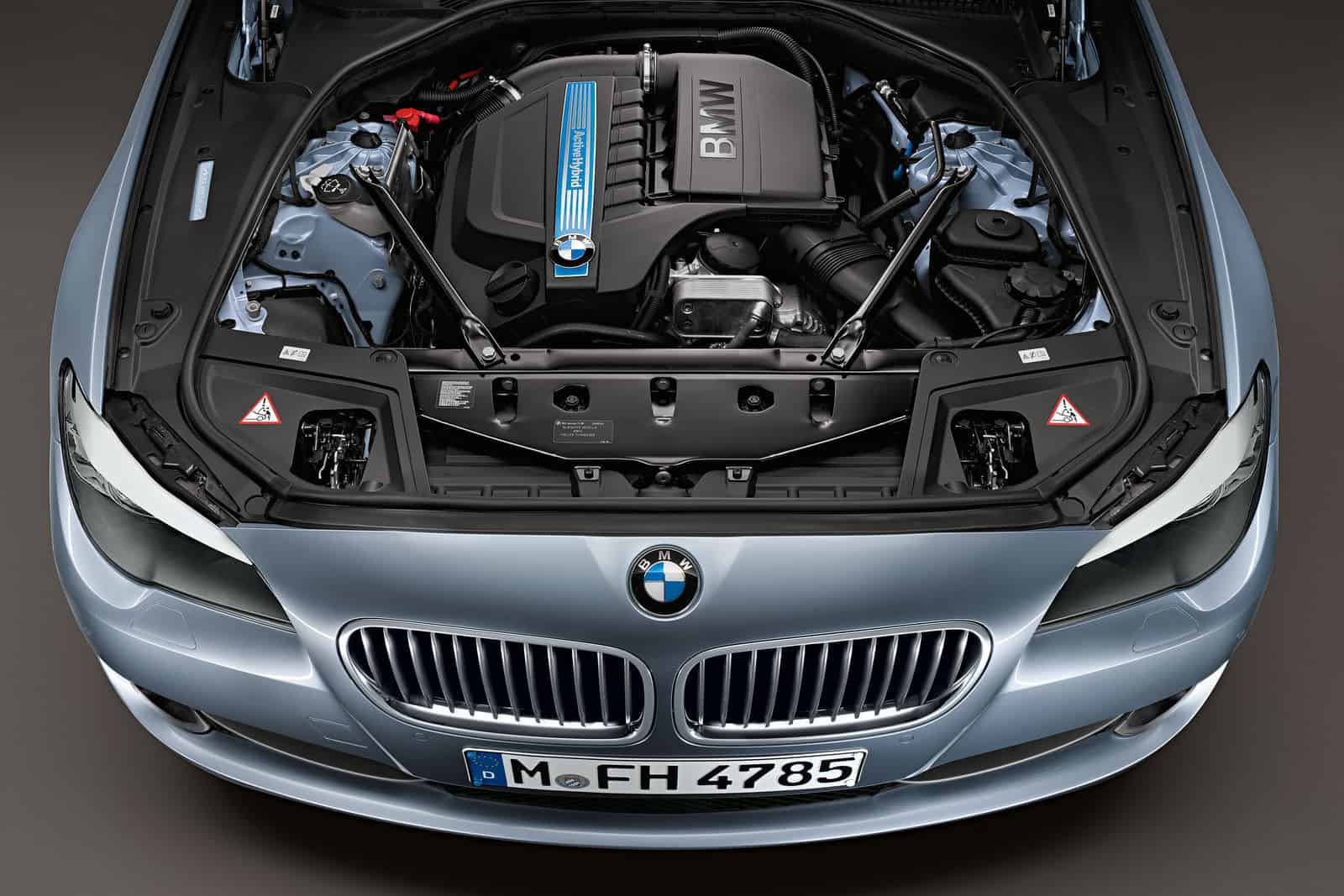 The ActiveHybrid 5 sedan is based on the 535i and features the 300 horsepower 3.0 liter TwinPower turbocharged in-line 6-cylinder engine from the same model. The total output on the hybrid version is increased to 335 HP, thanks to the addition of the electric motor, and up to 330 pound-feet of torque which is sent to the rear wheels via an 8-speed automatic transmission.