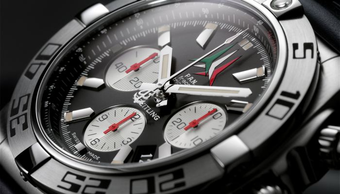The watch is powered by in-house Breitling Caliber 01 chronograph movement with 70 hour power reserve and is water resistant to 500 meters. The limited edition Breitling Chronomat 44 Frecce Tricolori Watches are priced at $9,400.