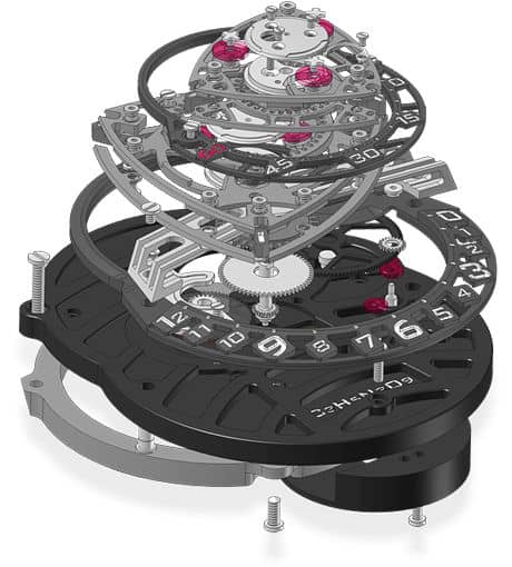 The beauty of this watch is its over complication of the movement and the watch dial. Why use regular minute/second/hour hands when you can make the entire watch movement part of the time telling experience?