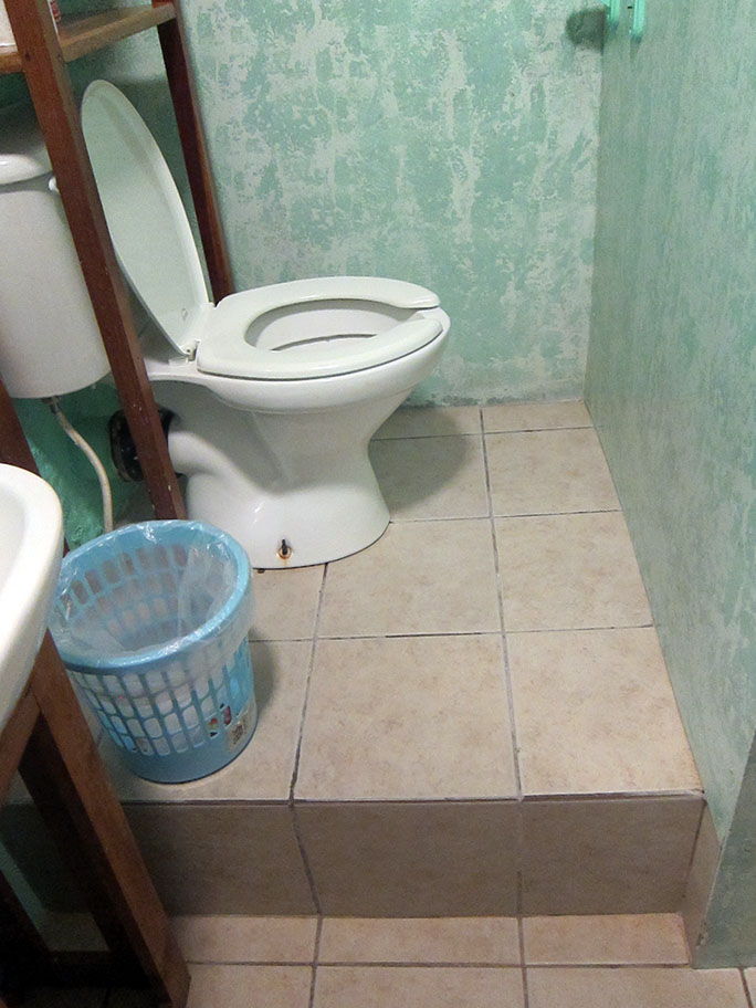 Have you ever wanted to fall asleep to the soothing sounds of your significant other shitting? Have you ever woken up and said “you know, my bathroom is just too large, I really wish I had one so small that a legless child can hardly fit?”. If you answered yes to either of these questions, and want to experience the exhilaration that comes with fearing for your life, De Real Macaw is the place to stay! If I had to sum this place up in one word, that word would be “depressing”. The rooms are small, which isn’t unreasonable given the price, but the in-suite bathroom (and I do mean in-suite) lends itself well to the prison like nature of the rooms. At one point the owner must have decided that a 3/4 wall around the bathroom would suffice, and so it was. Want some privacy? Forget it. The toilet may as well be sitting in the middle of the room.