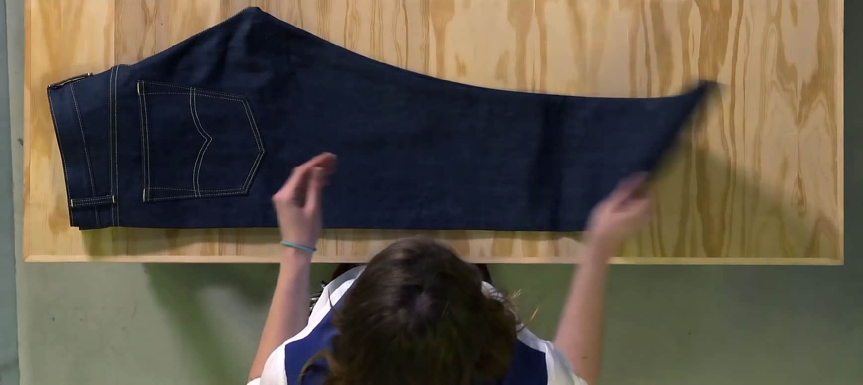 The client selects the denim fabric. He then chooses the weight, texture, and color of denim along with the stitching. There are various thread-counts to choose from, made in the U.S., Japan, or Turkey. Next, he tries on some pattern samples – e.g. high, medium, or low-rise – to get a quick idea of what fits best.