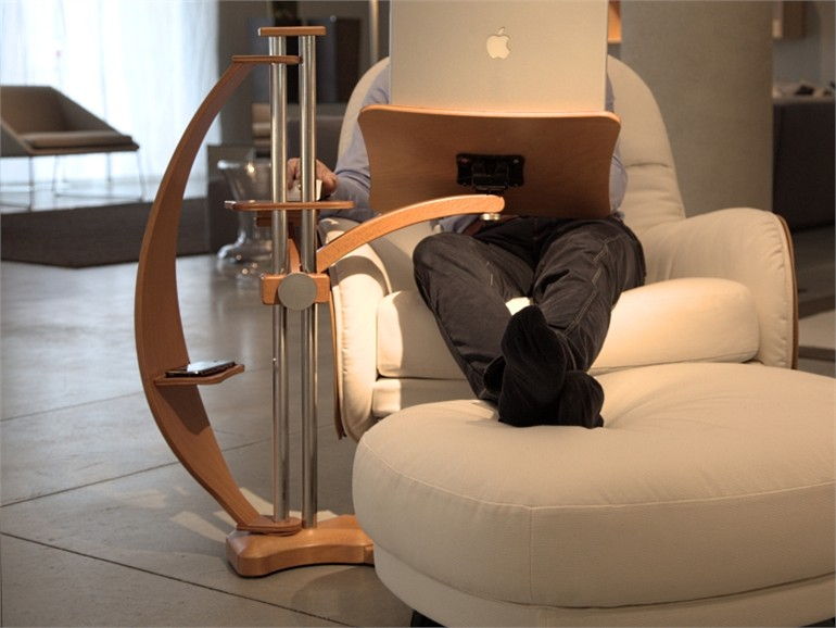 With the ever increasing popularity of portable computer devices, the lines between work space and relaxation/entertainment space are getting blurred. We constantly take our iPads and laptops out of our work space and into the living room and other places that used to be strictly used for non-work related things. I find it very hard to work on a laptop if I don’t have a proper table, sure I can use my lap but it gets pretty hot in a hurry and dragging tables close to couches is not very practical or ergonomic.
