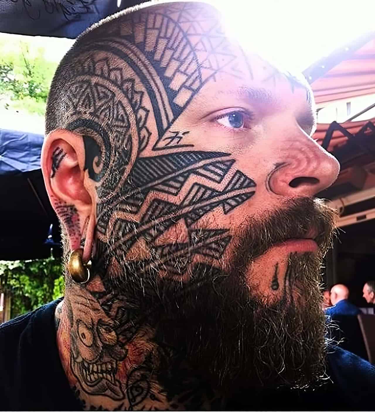 Moving from the complex designs of sacred geometry, tribal face tattoos mark a bold statement. These tattoos draw from rich cultural traditions, showing off tribal affiliation and pride.