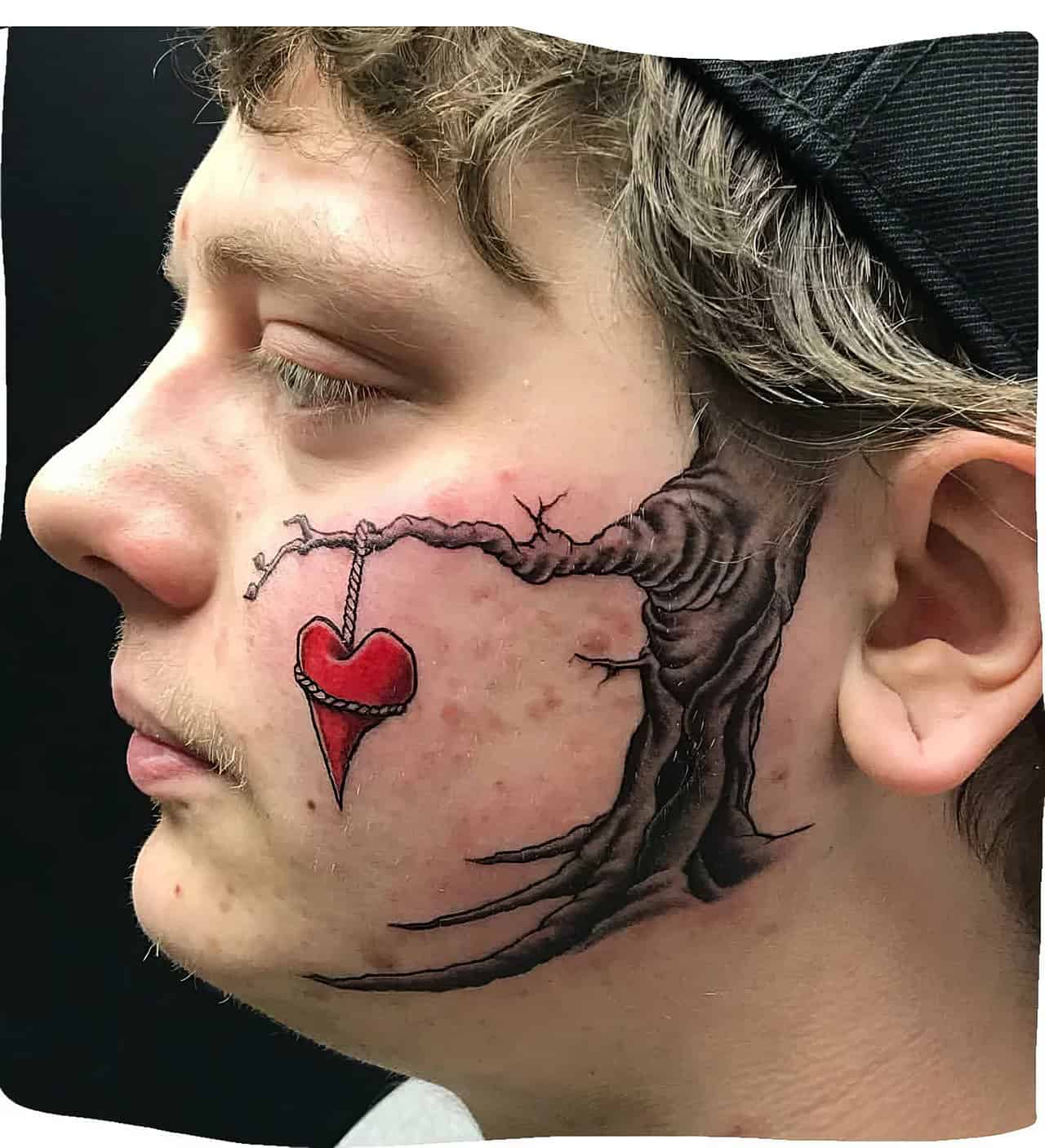 Moving from expressive word tattoos, heart symbols on the face tell a bold story. Men choose these tattoos as marks of love or passion. They stand out, especially when inked by skilled artists using top-quality tattooing gear.