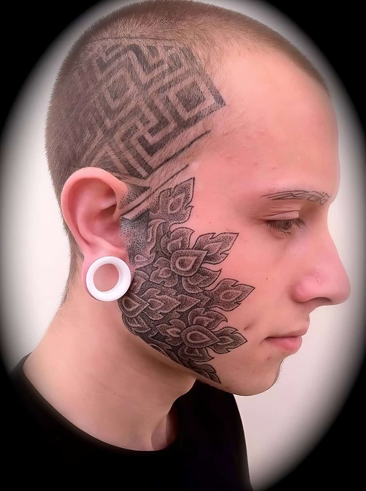 Face tattoos grab attention. They range from simple lines to complex shapes, each telling a story or showing style on one’s visage.