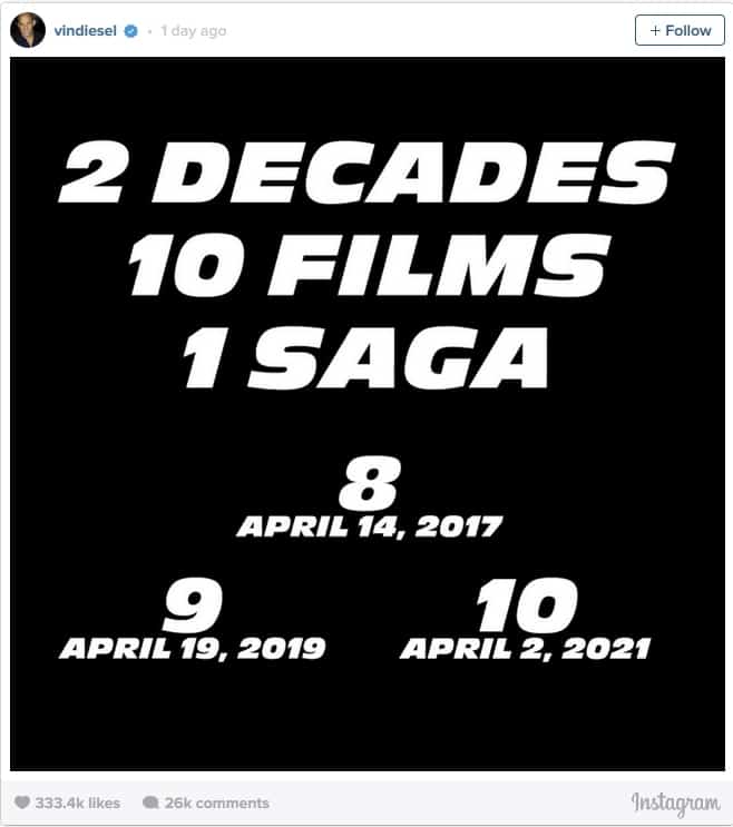 Oh for fuck’s sake, not another one of these fucking idiotic movies. Yes folks, we’re going to be blessed with more installment of this amazing Oscars worthy movie, also known as Fast and Furious … this news comes courtesy of the world’s best actor, Vin Diesel.