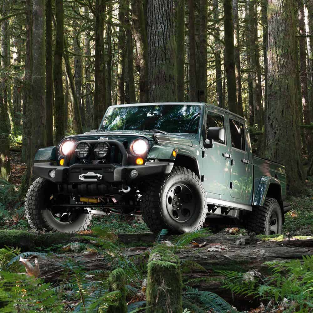 - 61″ X 60″ Cored Composite Bed, Stamped Steel Cab Closeout, Double Cab Hardtop , Double Cab Rocker Guards, AEV Double Cab Rear Bumper