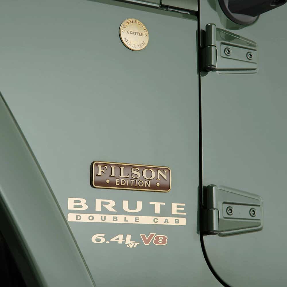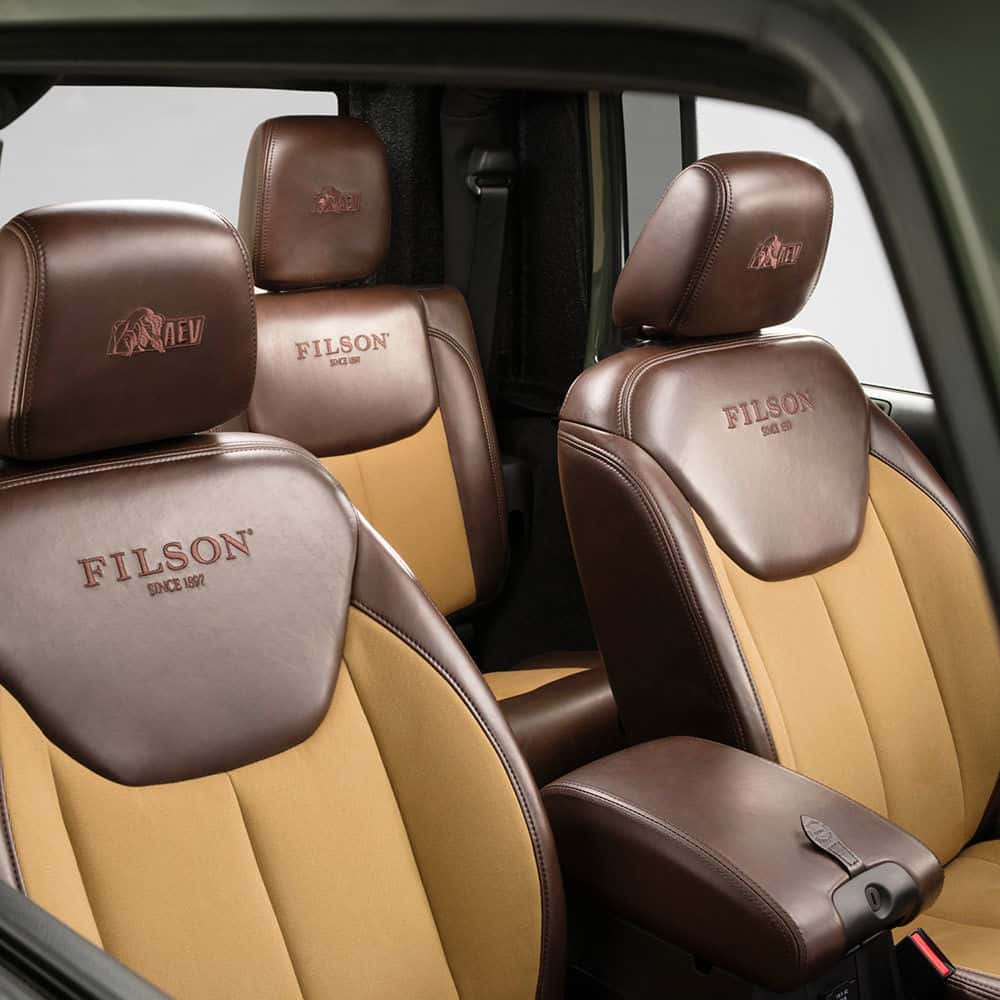 American outdoors apparel maker, Filson teamed up with American Expedition Vehicles, the company famous for turning Jeep Wranglers into trucks, to come up with the Filson edition AEV Brute. I must confess, I’ve never heard of Filson or AEV, I have seen AEV Brutes but didn’t know who made them.