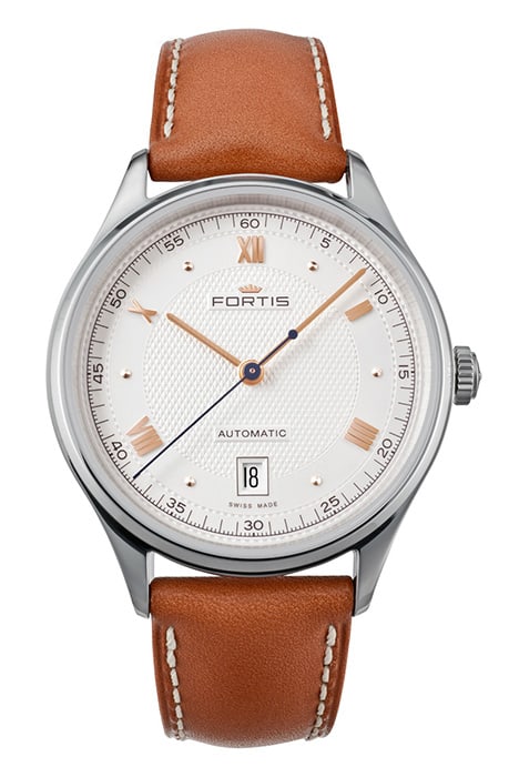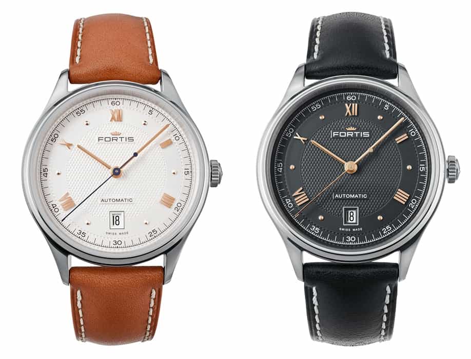 Here’s another set of elegant looking watches in the Terrestis line from Fortis watches, called the 19Fortis, available in a.m. and p.m. varieties. These watches are based on Fortis watches from the 1940’s with classic looks but more modern sizes.