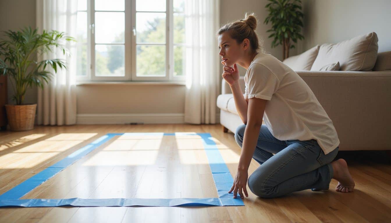 - Test your measurements by walking around the taped outline, ensuring you can move freely without bumping into furniture.