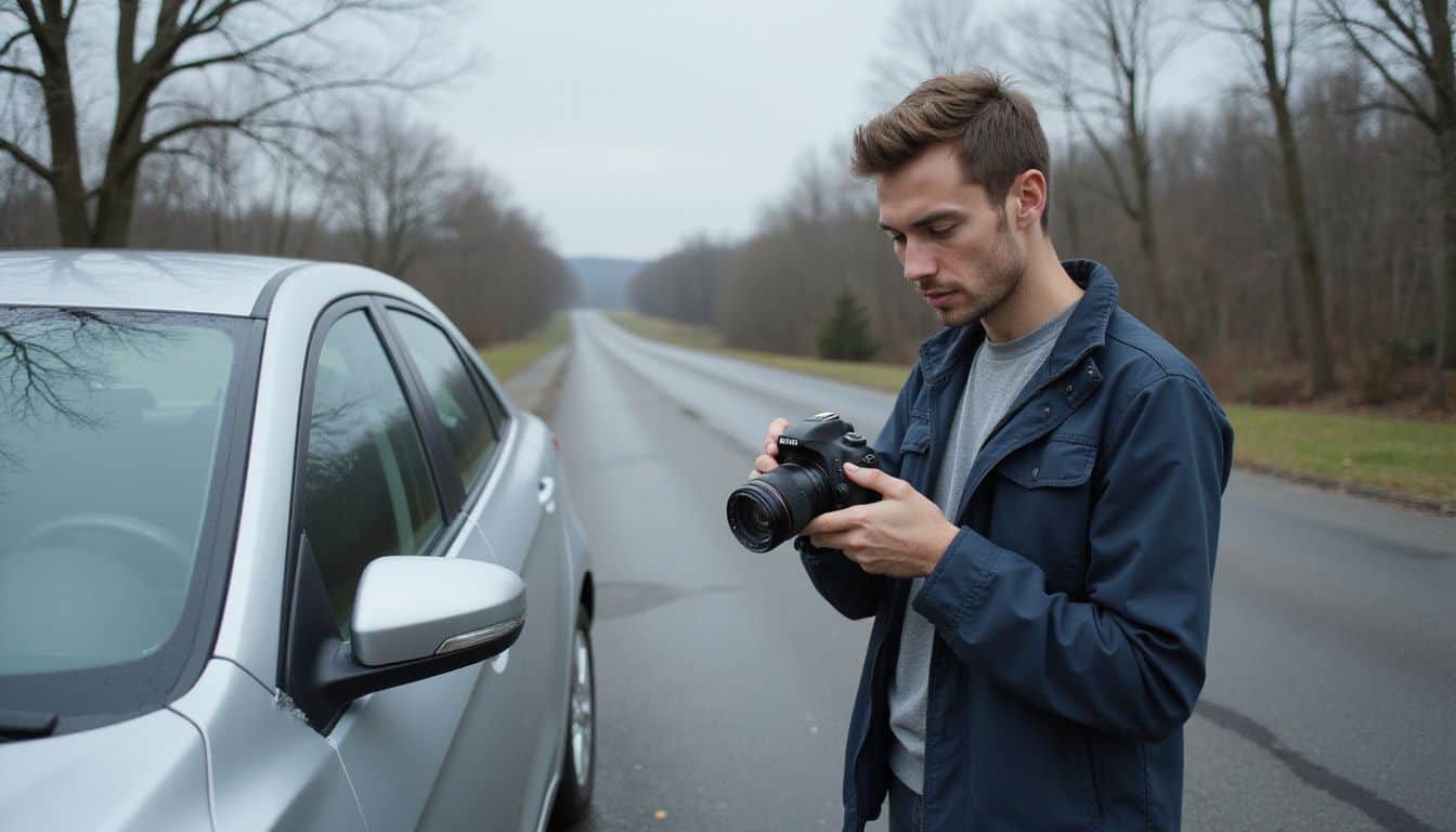 Take detailed photographs of vehicle damage from multiple angles. Capture the bumper, doors, and any visible dents or scratches. Document surrounding conditions like weather and road conditions at the scene.