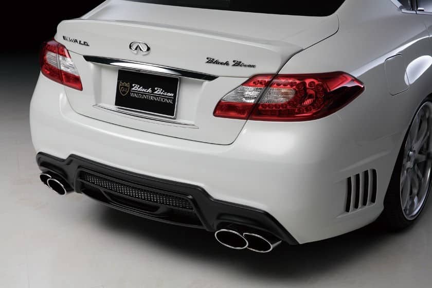 There is not much in the ways of performance enhancements on this vehicle. The Black Bison package also includes quad tailpipes for the sports exhaust system. To match the new and aggressive body styling, Wald International also gives the Infiniti M a new set of alloy wheels and a suspension system allowing the vehicle to sit lower and give it an aggressive stance.