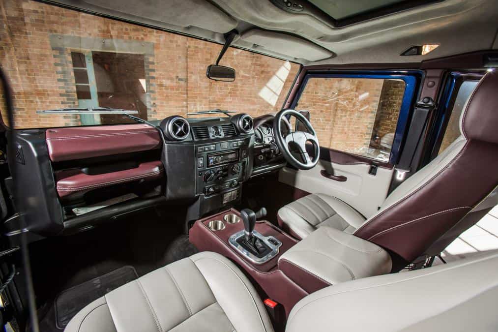 The Defender Zulu² also benefits from some suspension work and upgraded brakes. The exterior gets mild mods, with LED headlights, aluminum grill, and larger front air intakes. The interior now includes extra sound deadening material, leather seats, and air conditioning.