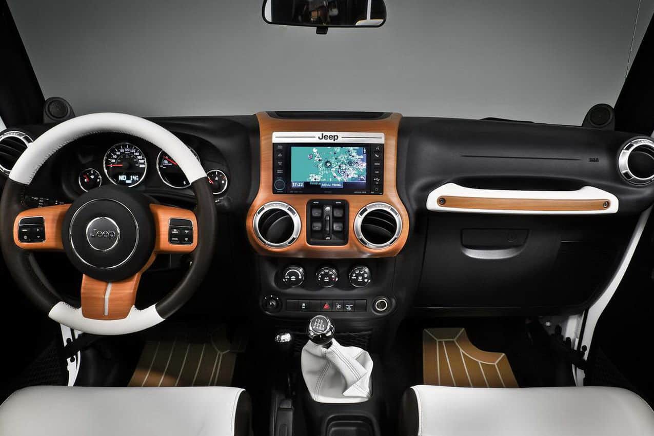 The Jeep Wrangler Nautic Noir’s design is inspired by a luxury yacht and features a black exterior and black leather interior. Everything else on the black version is the same as the white version.