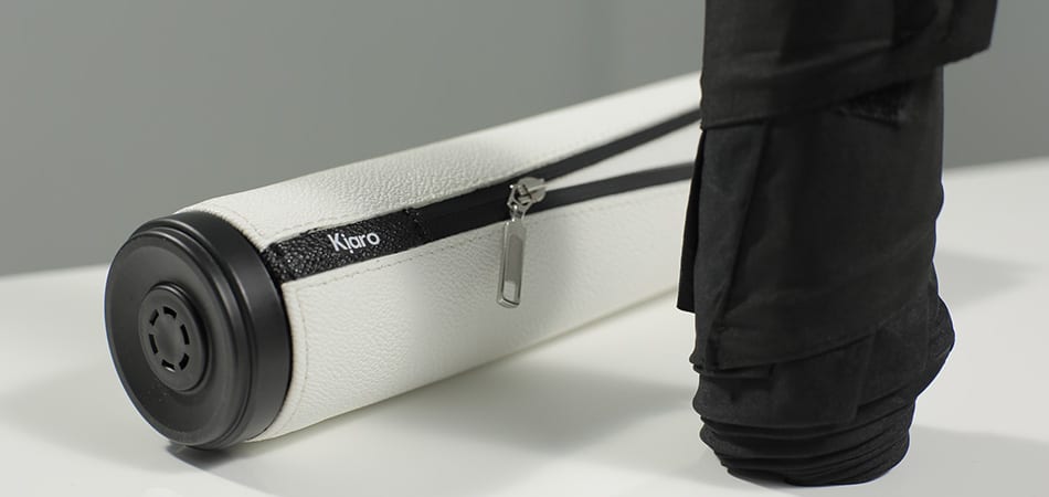 The Kjaro is made in Italy so you know the quality will be there and only weighs in at 248 grams with the case and measures in at 12-inches. You also get to customize the umbrella by choosing the color of the case, umbrella, and the handle.