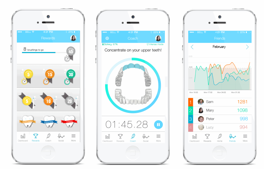 The device is turned on/off with a single button but the app controls the various brushing modes available. You only need one device for the family and keep track of each member individually through the application. And this way, your kids can’t lie about whether they’ve brushed their teeth or not. Each family member will have their own brush head.