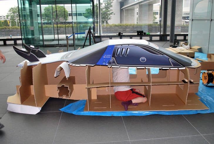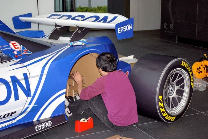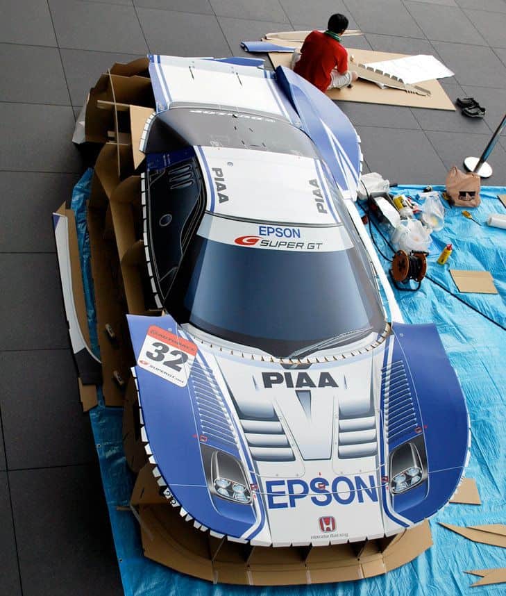 I have always loved the Acura NSX but the price has also been out of my range. While I save my pennies to buy the real thing, I think this Epson Nakajima Racing SuperGT NSX made of cardboard might temporarily satisfy my NSX fetish. This would make an excellent conversation piece as it sits in the garage next to your 1995 Toyota Corolla. Remember to dust it and not wash it.