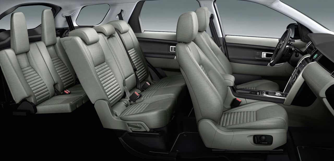 The Land Rover Discovery Sport is aimed at the Audi Q5 and Mercedes GLK, with similar sized body; measuring 180.7” in length with a wheelbase of 107.9”. There’s plenty of room on the inside for 5 passengers, and there’s also a +2 third row. The second row seats are two inches higher than the front seats, giving the vehicle a “theater” style seating.