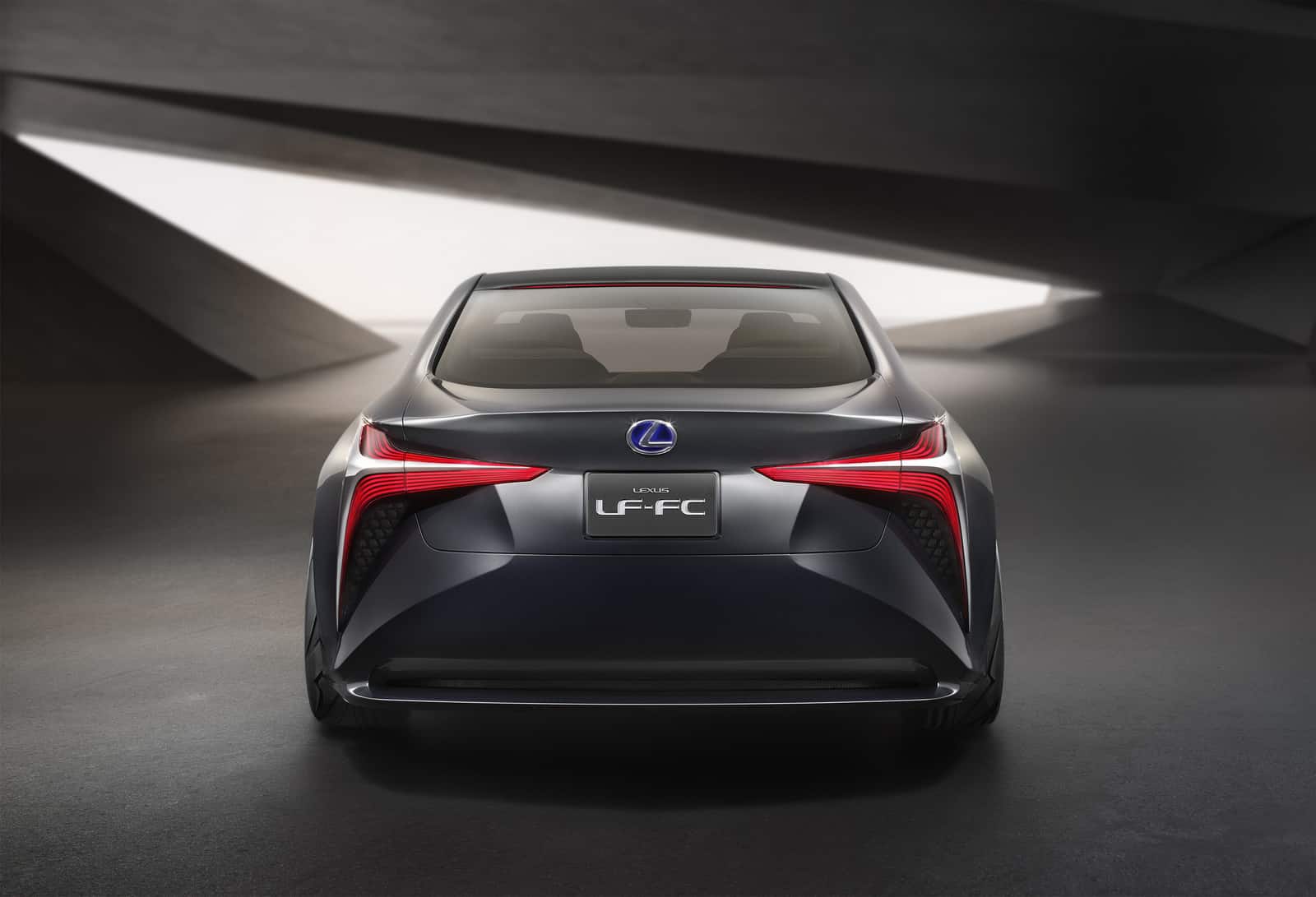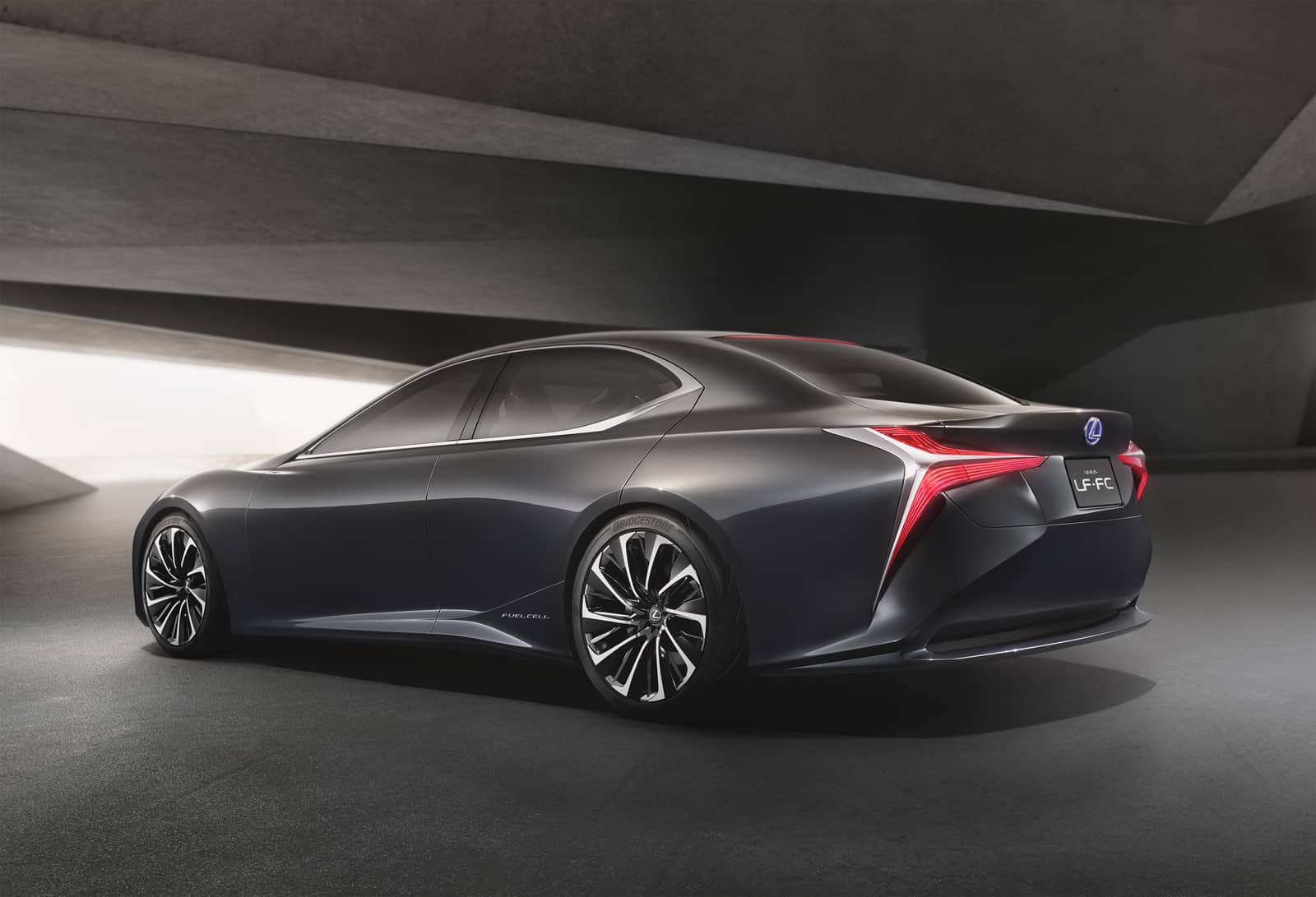 The LF-LC Sedan Concept is powered by a hydrogen fuel cell system, with a rear mounted motor driving the rear wheels, and smaller motors at each of the front wheels, giving the car AWD.
