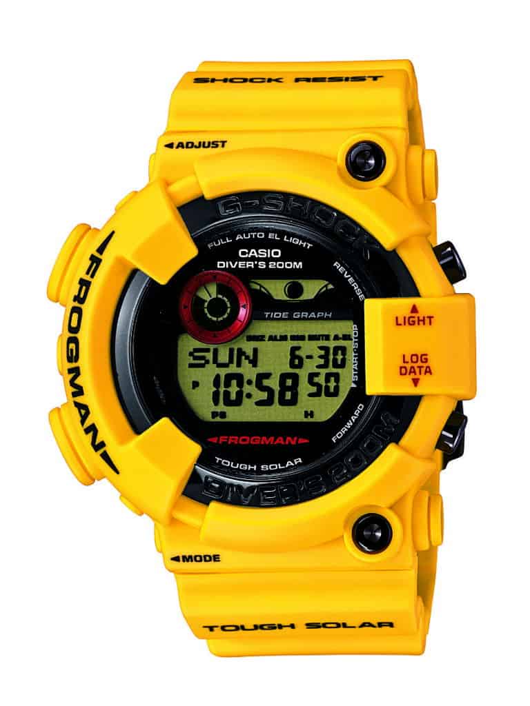 The other watches in the collection are Master of G Frogman, GF8230E-9 and GWFT103E-9. These are the more expensive watches in the collection and are intended for divers, these watches are ISO certified to 200 meter water resistance. The watches are solar powered and come with moon-tide graph among other standard features described above. The GF8230E-9 comes in a stainless steel body, while the GWFT103E-9 comes in a titanium body – both wrapped in polyurethane resin. The GWFT also comes with Casio’s Multi-band 6 Atomic time technology to automatically adjust the time and date.