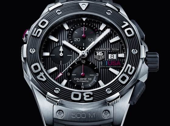 TAG Heuer has teamed up with Oracle Team USA for the 34th America’s Cup boat race and is introducing two limited edition watches. The watches are the TAG Heuer Aquaracer 500M Caliber 16 Chronograph 44 and the Aquaracer 500M Caliber 5 43. The watches come with a hint of red, black, and white on the hands, pushers, and watch face – these three colors are the official colors of Oracle Team USA.