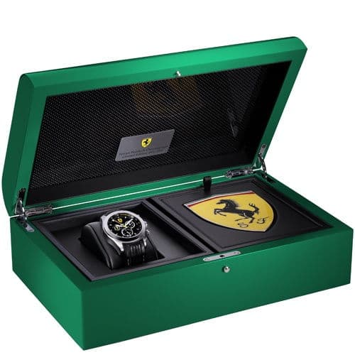 Ferrari has rolled out the Ferrari Paddock Chronograph watch collection, available exclusively to its online customers and limited to 299 pieces in each variation. The collection pays homage to Italy, each set representing the three colors in the Italian flag (red, green and white). Each box comes with a watch and an exclusive item and has an engraved limited edition numbered plate.