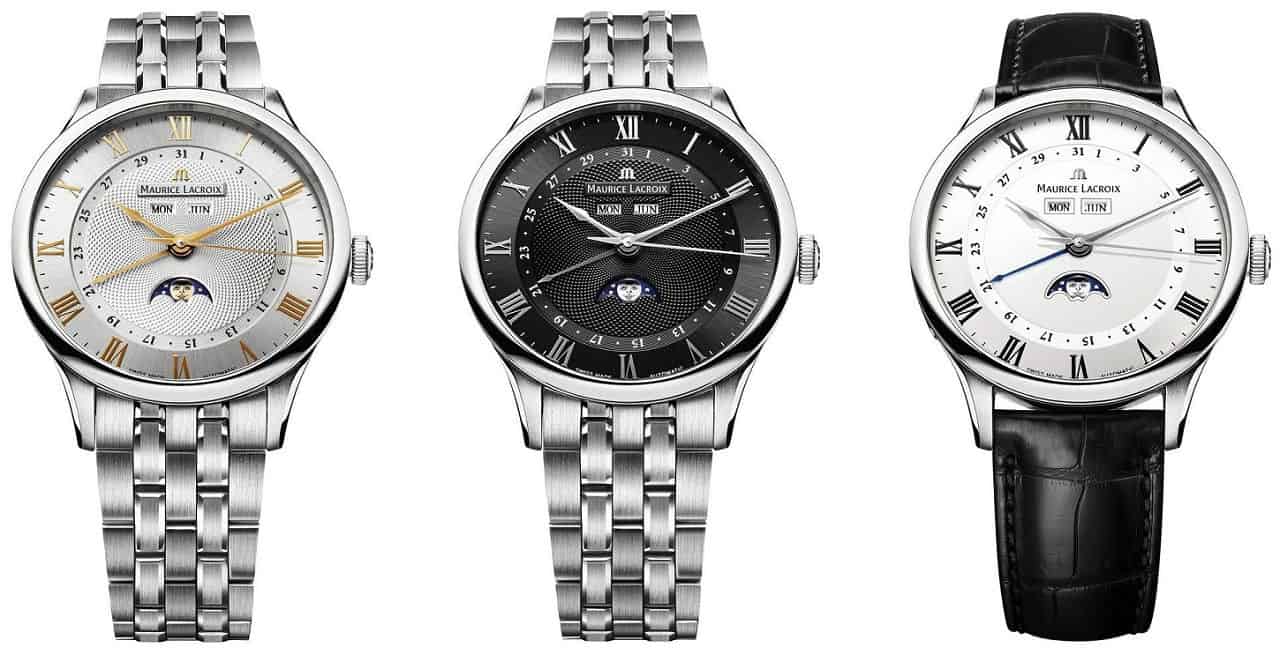 The Maurice Lacroix Masterpiece Tradition Phases de Lune watches feature AR coated sapphire crystal on the front and are water resistant to 50 meters. The watches are powered by ML caliber 367 automatic movements with 38 hours of power reserve. Via: Maurice Lacroix