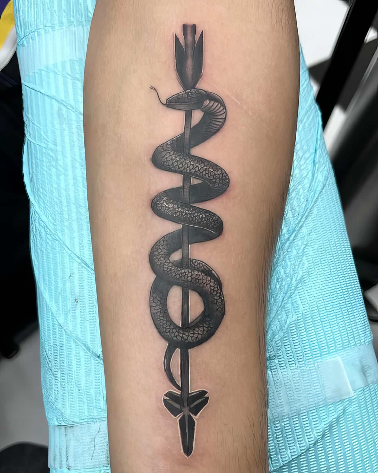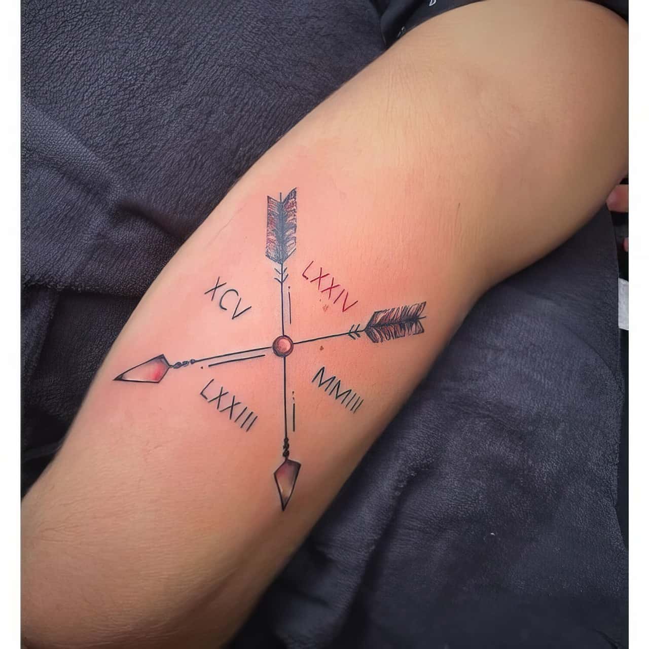 Arrow tattoos grab the spotlight with their sleek design and deep meanings. They’re like a compass, guiding men on their personal journeys. You can wear an arrow on your arm, back, or forearm.