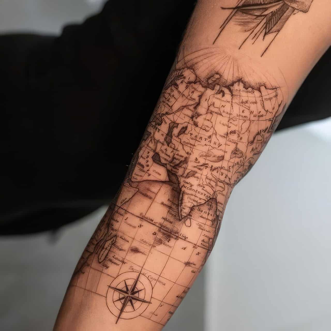 Compass tattoos are all about direction and finding one’s way. Think of it like a map on your skin that guides you. It’s not just about geography, but life’s journey too. This design can tell the world about your love for adventure, or it could be a symbol guiding you through tough times.