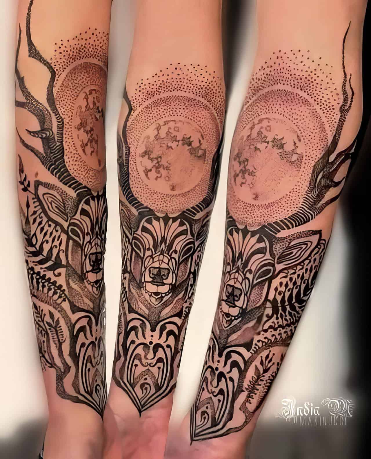 It’s like wearing a piece of the ancient world on your skin. These tattoos tell stories of harmony with nature.
