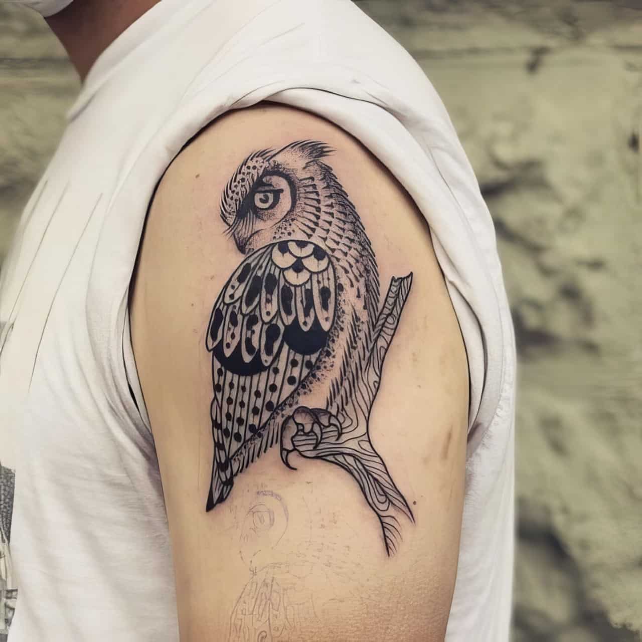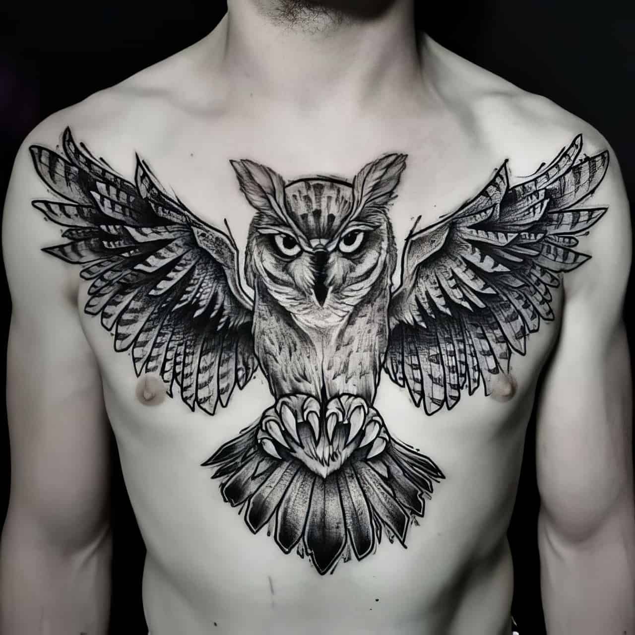 Shifting from stars to feathers, owl tattoos come into play. Owl ink speaks volumes about wisdom, mystery, and a connection to the night. Guys choose this design for its deep meaning and striking look.