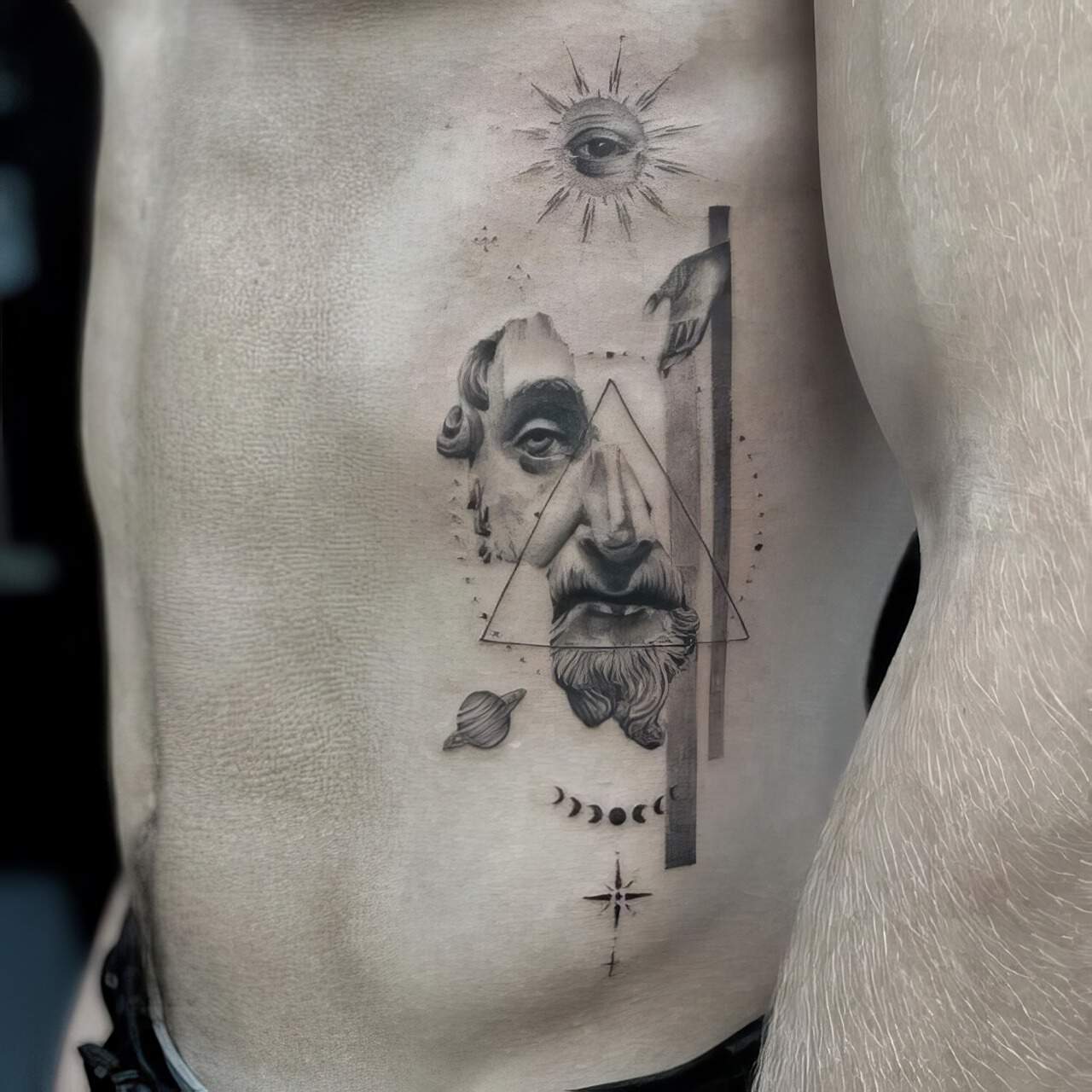 This tattoo style is great for those who want something different from the usual patterns or portraits. With abstract tattoos, there’s freedom to create. You can have a design that matches your personality without any clear symbols.