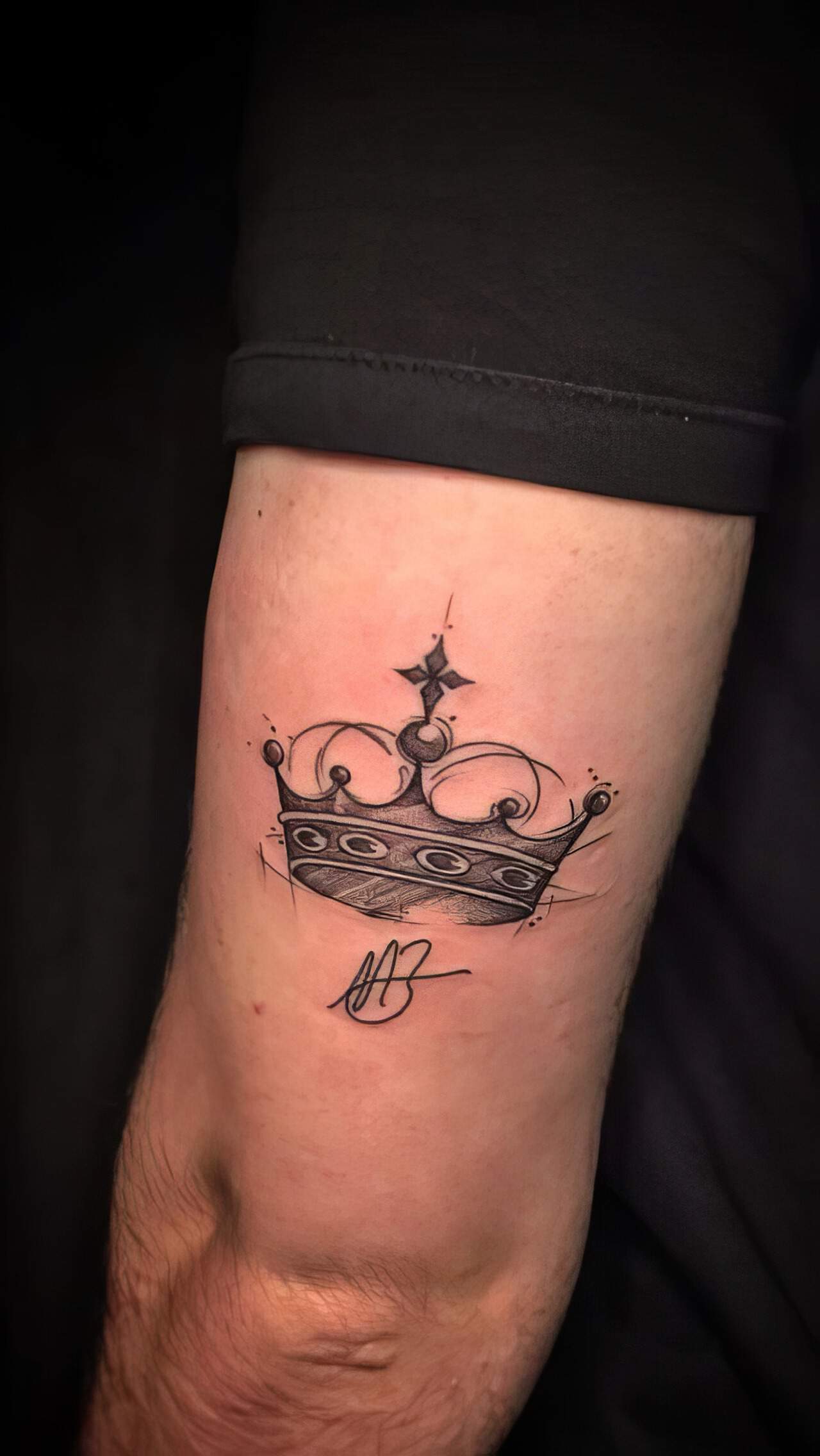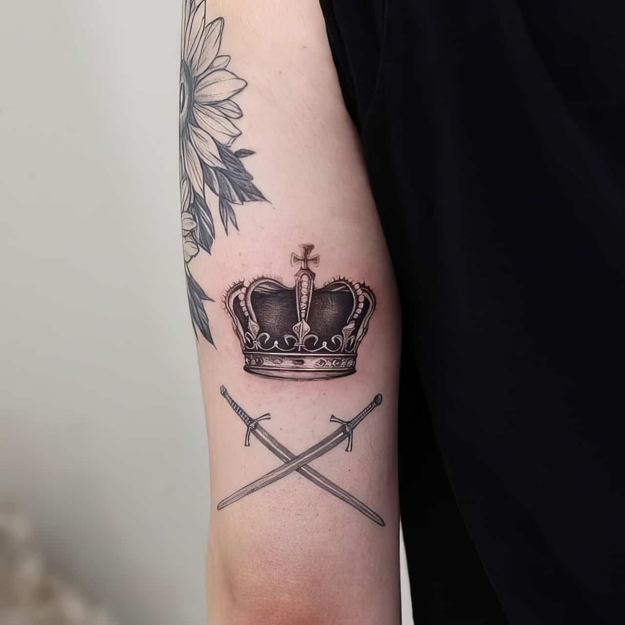 This type of tattoo offers plenty of styles for any man’s taste. You can have it big or keep it small; place it on your arm or hide it somewhere only a few can see. Crown tattoos mix well with other symbols too—think lions for courage or stars for ambition.
