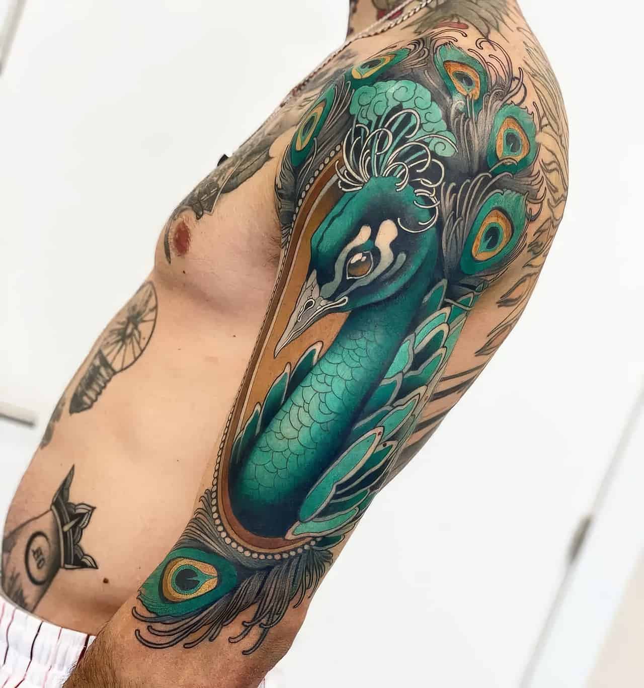 Feather tattoos stand out for guys who like to march to the beat of their own drum. They scream freedom and a deep bond with nature. Think about it, a tattoo that floats on your skin just like a feather would in the breeze.